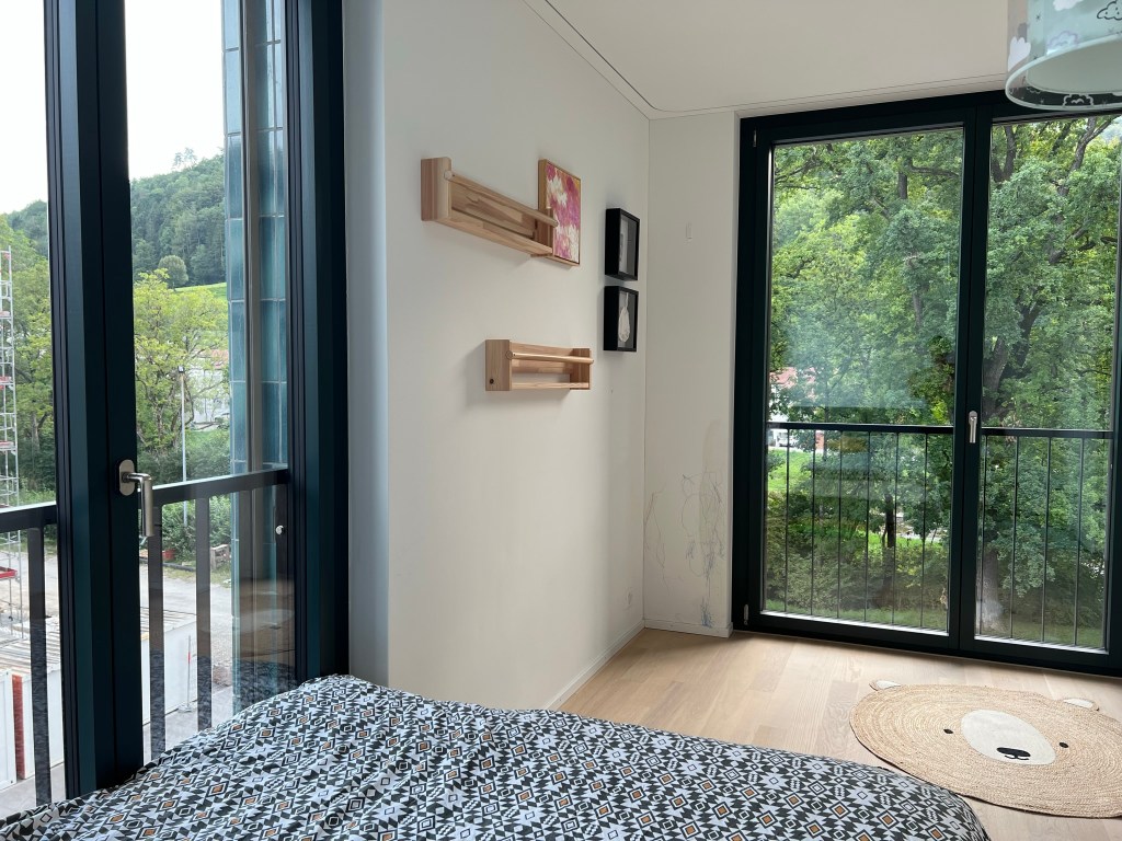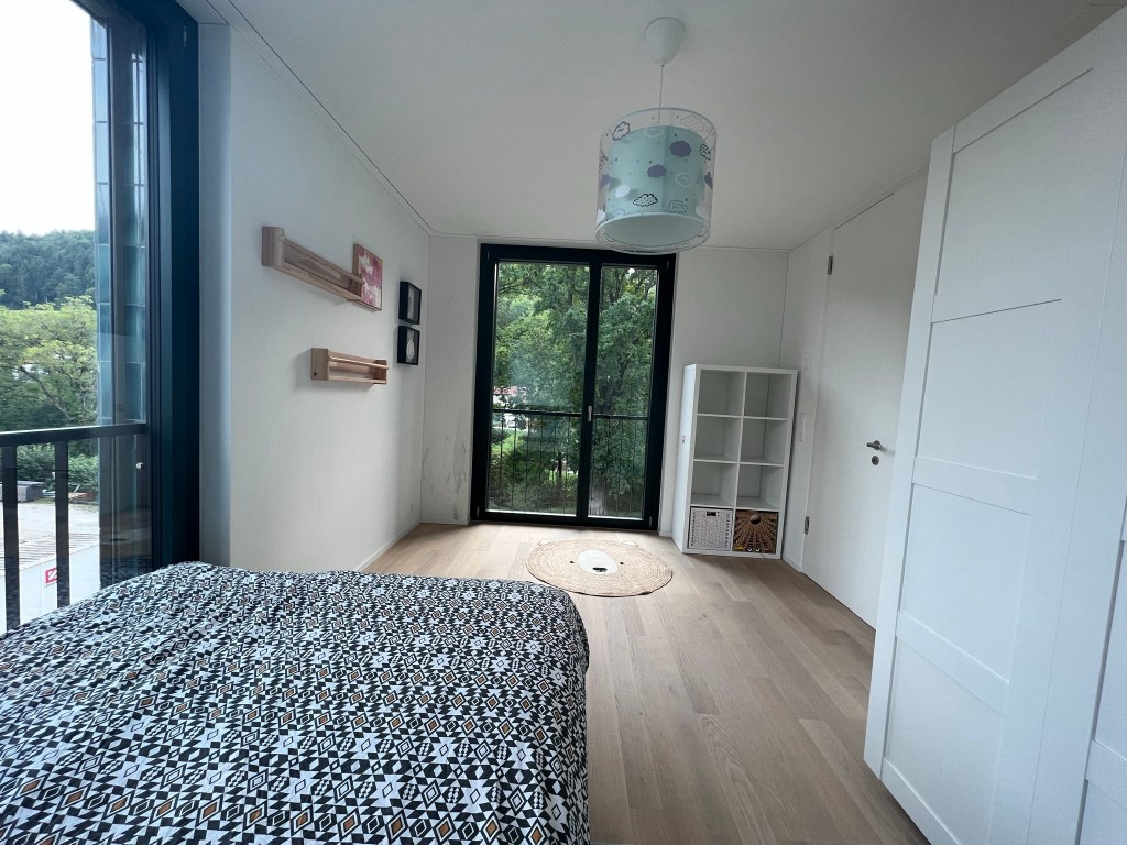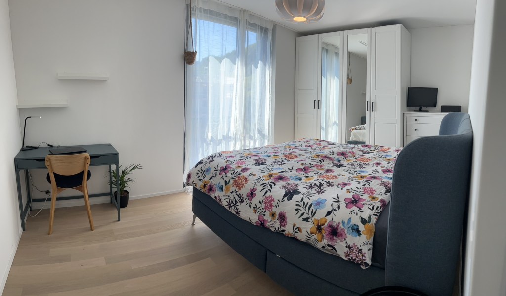 Thoughtfully designed for long-term comfort, it comes fully furnished and fully equipped, featuring a king-size bed, a high-end kitchen, and stunning views of the Sihl River — all with no agency fees.